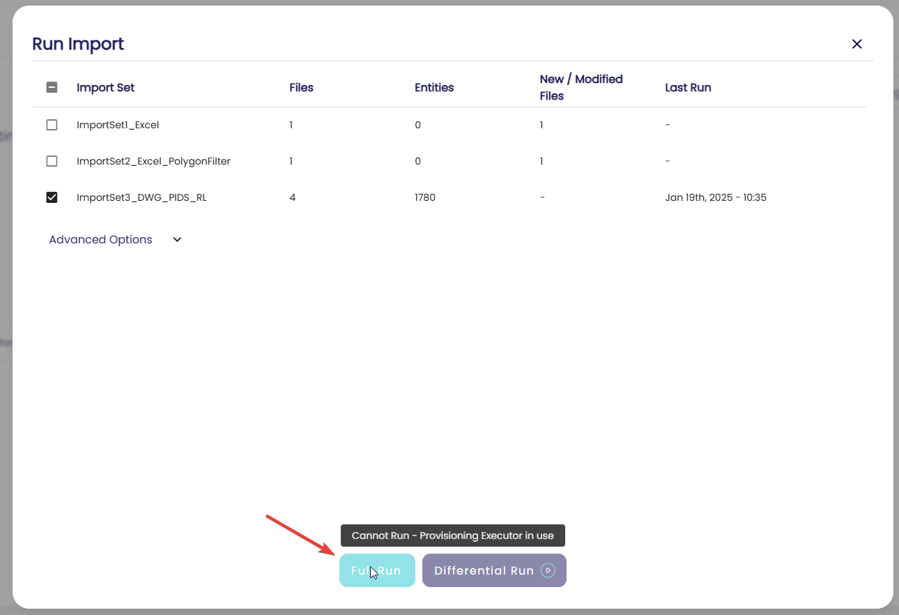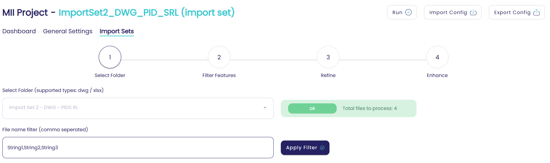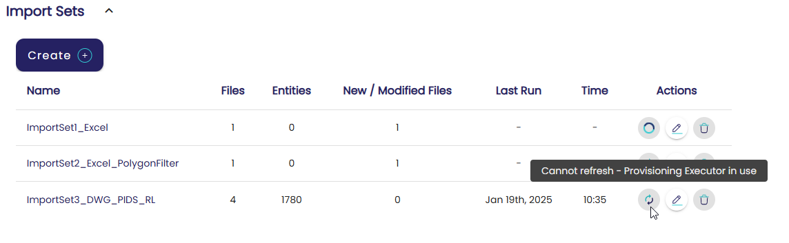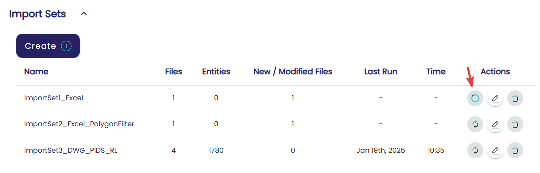 Refresh the status of the import set - This button allows to process the first file contained in the import set folder, in order to populate some of the import set fields for feature filtering, attributes refinement and enhancements.