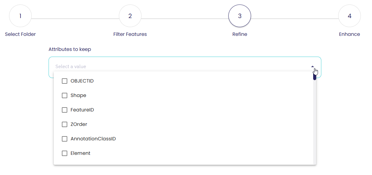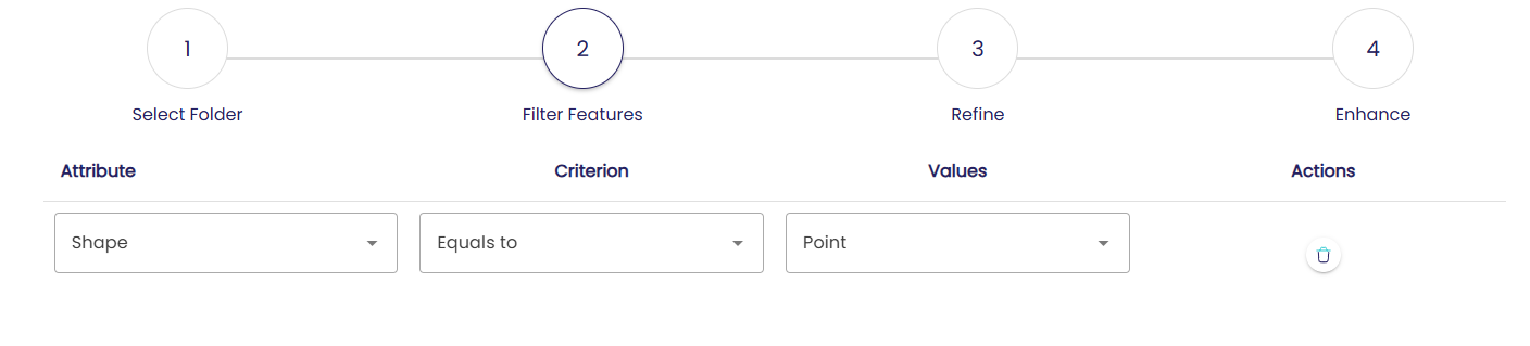 Filter by shape type - This filter only applies to CAD files. It allows to import only the features which have a specific shape (polygon, polyline, point, annotation).