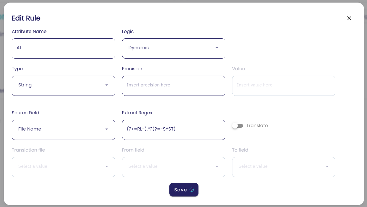 Using a regular expression to extract an ID from another attribute, and use the ID as a lookup value in an external file, also referred to as “translation file”, that contains the actual value.